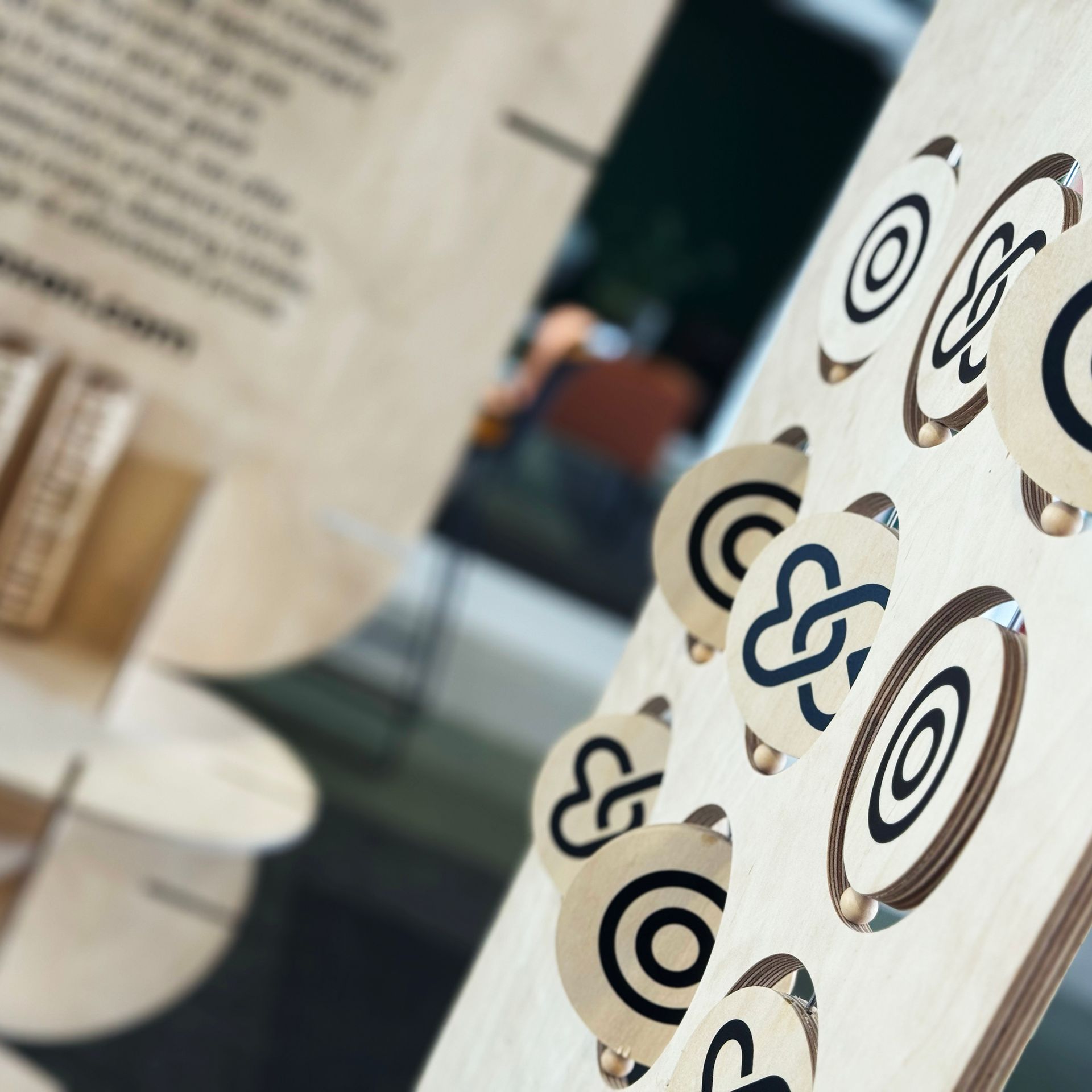 The shelf display is constructed from movable pegs that can be adjusted to display replacement furniture components, while the noughts-and-crosses panel promotes visitor interaction using gameplay. This is further enhanced with branded wooden yo-yos as give-aways.